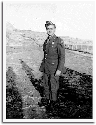 "Frank Foster, Company G, of Williston, North Dakota, served on Mindoro and Negros from March 1945, until reassignment to the 11th Airborne and transfer to Japan late that year.  He purchased a set of photos from an unidentified member of the 503d, who shared his experiences in the Philippines.  The photographer indexed the pictures and sold as many sets as he could.  Frank thinks he took delivery of the pictures after returning home in May 1946.  Frank, (pictured above in late 1944 when he visited the homestead on leave following completion of training at Fort Benning, and immediately prior to being shipped overseas,) is also visible in picture #76, back row, second from left, and in #77, holding the sword."