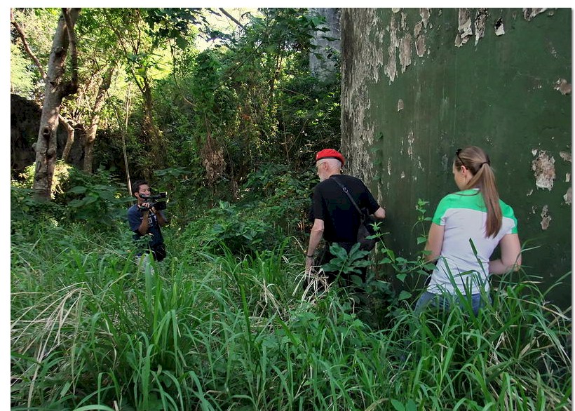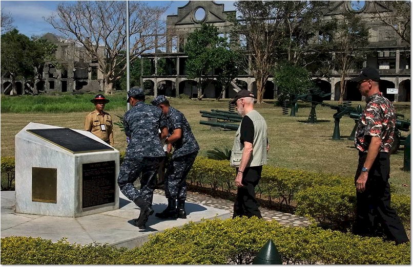 This past trip to Corregidor (January 11th to 16th) was quite unusual but very interesting for me. Along with others, I went there to meet a 503rd Paratrooper (Richard Adams) who jumped on Topside in 1945. This was his first trip back to Corregidor since the war. He was an amazing guy and at the age of 88, had no problems getting anywhere he wanted. This included the top of Malinta Hill. A film crew also accompanied us for a couple days. They are creating a documentary about Corregidor Island. I am sure Karl will provide a detailed report so I’ll just post a few photos. On arrival they decided to take the ‘regular’ day tour to get a feel for the island today. An exception was at the 503rd PRCT Memorial at the Topside Parade Ground where there was a wreath laying ceremony.