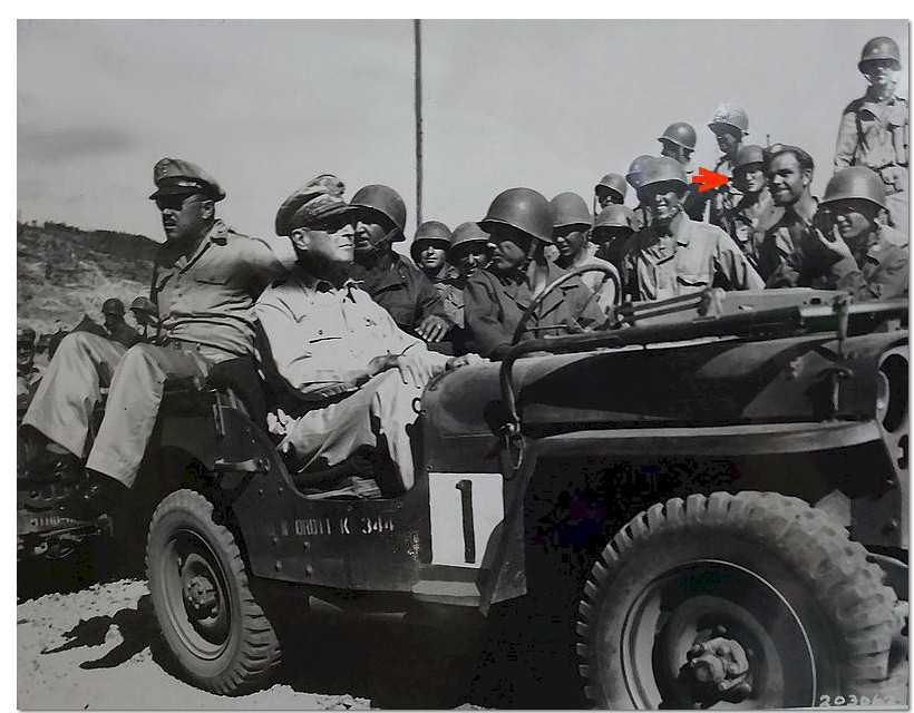 with other troopers watching MacArthur the day he came back to raise the flag.