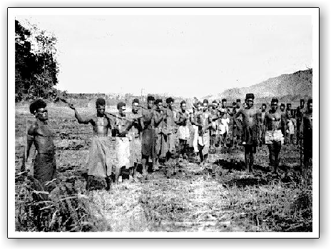we stood looking out across the field of yam plants, we observed a Jap wearing