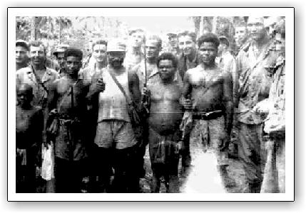 Our landing site was a field of ten foot high kunai grass. It was extremely dusty from the dried out grass of years gone by, its saw-tooth edges cutting. The temperature had to be 120 degrees, and we soon found that the only way to get to the edge of this mess was to fall forward, let the next man walk over you, and then for him to fall and you in turn walk over him. Many of our troops passed out in the heat and had to be carried to the shelter of the jungle.