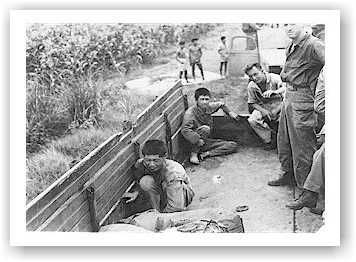 The next morning, for me the war is over.  I hand my Tommy Gun and the .38 cal. pistol I have carried throughout the war to my replacement (replacement name?)  I board a truck with several other men, a Jap prisoner, and a few Taiwanese laborers, for the ride to Bacolod and the ship that will take me home.