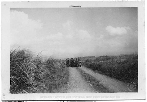 As I reach a point in front of the opening  I notice a small mound of sand, off center of the road.  It does not look natural to me, and  I signal to Andy to come up, and point it out to him. He will, in turn, direct the others away from it. In my mind it has to be a land mine, and I treat it that way.  Moving on about a hundred feet there is another small sand pile on the opposite side of the road.  The mines are planted to take out tanks or trucks.
